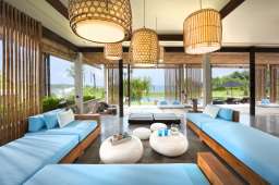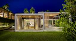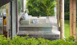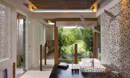 The open plan design of the living and dining area allows the best views to the sea beach and garden, and free circulation of the air. This extends into a large terrace leading towards the 16 m swimming pool.