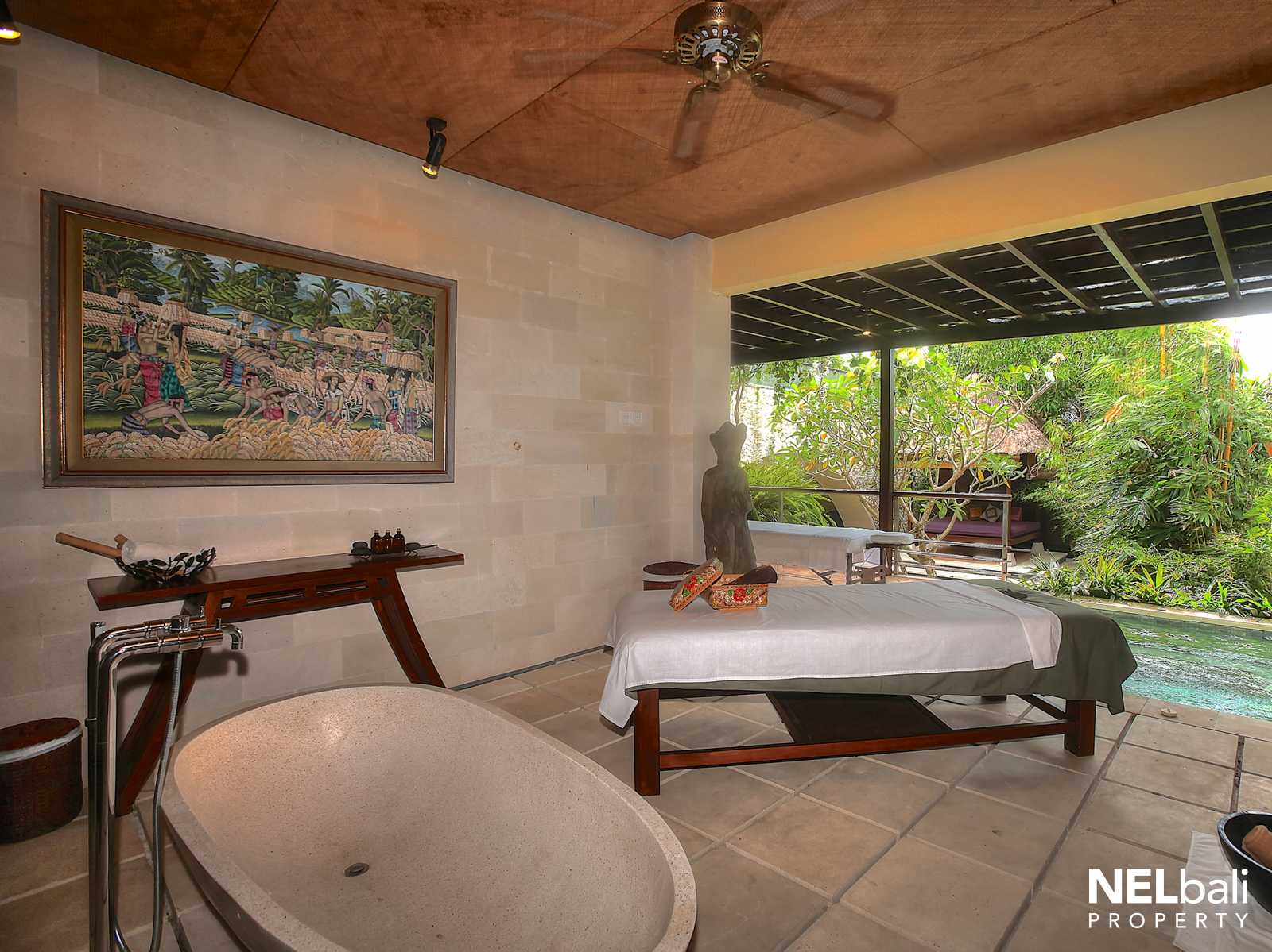 With a separate entrance but within the compound is a blissful one bedroom hideaway, tucked to one side of the property and accessed through a traditional Balinese gateway.