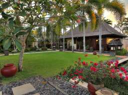 The gorgeous gardens extend to a 15m infinity pool with hilltop views over Jimbaran Bay, Kuta and far, far beyond.