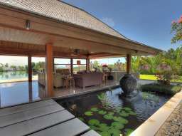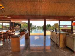 The living and dining pavilion merges seamlessly onto the pool deck and thatched 'sunset' bar to maximise the views, which are spectacular by day or night. The living space is open, eminently practical yet stylish.