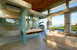 The frameless Hafele glass wall panels installed throughout enable to close the villa up during periods of inclement weather, or just to enjoy fully airconditioned comfort provided by central airconditioning system, or alternatively to enjoy the breeze al fresco if preferred.
