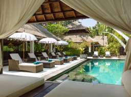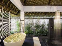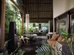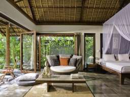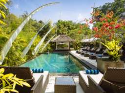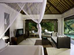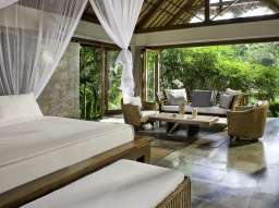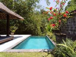 Each spacious bedroom suite features a private elevated terrace overlooking the fast flowing river, and open air garden bathroom. In addition to the main swimming pool, three of the bedroom suites have each a private plunge pool.