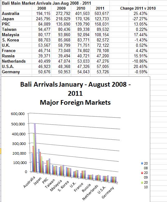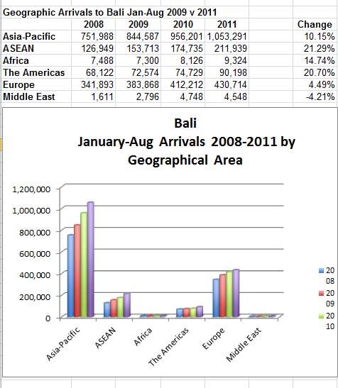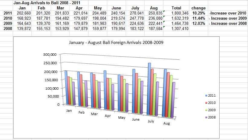 Bali by the Numbers: August Arrivals Up 6.25% as Bali Moves Towards Record 2.75 million Arrivals for 2011.
