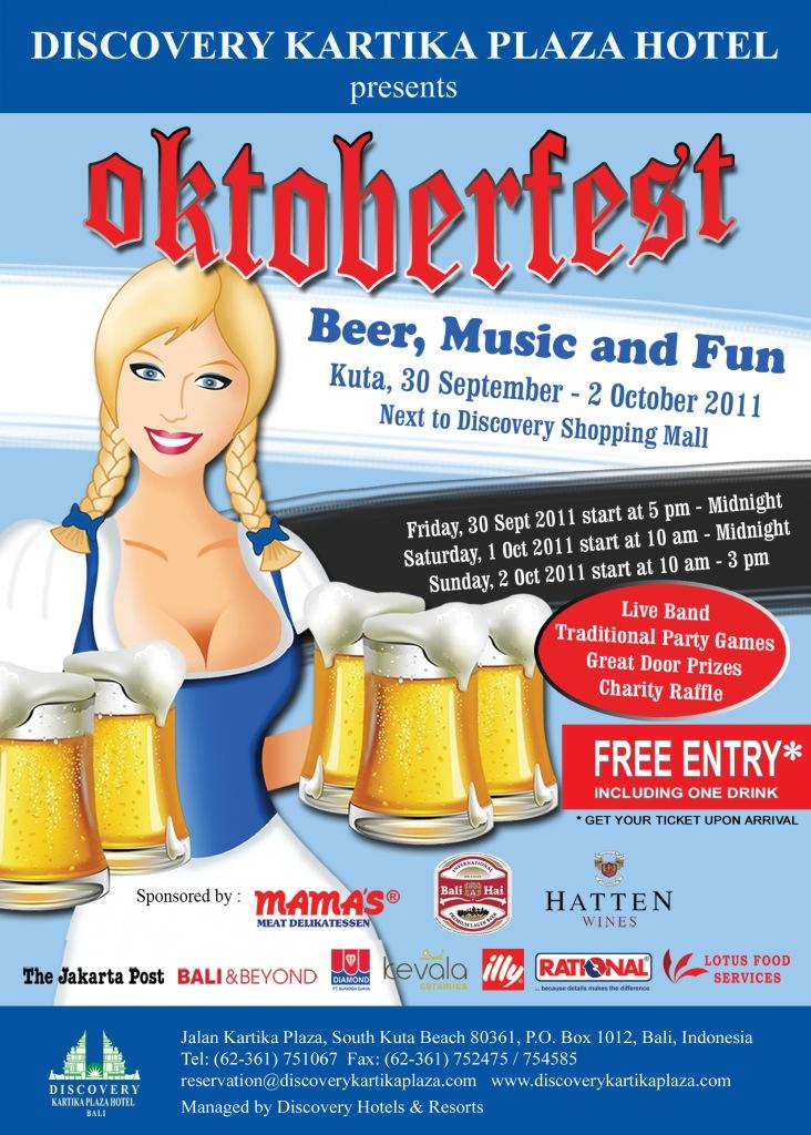 It will be beer, music and fun at Oktoberfest 2011 from September 30 – October 2, 2011 in a specially constructed party tent located between the Discovery Shopping Mall and the Discovery Kartika Plaza Hotel.